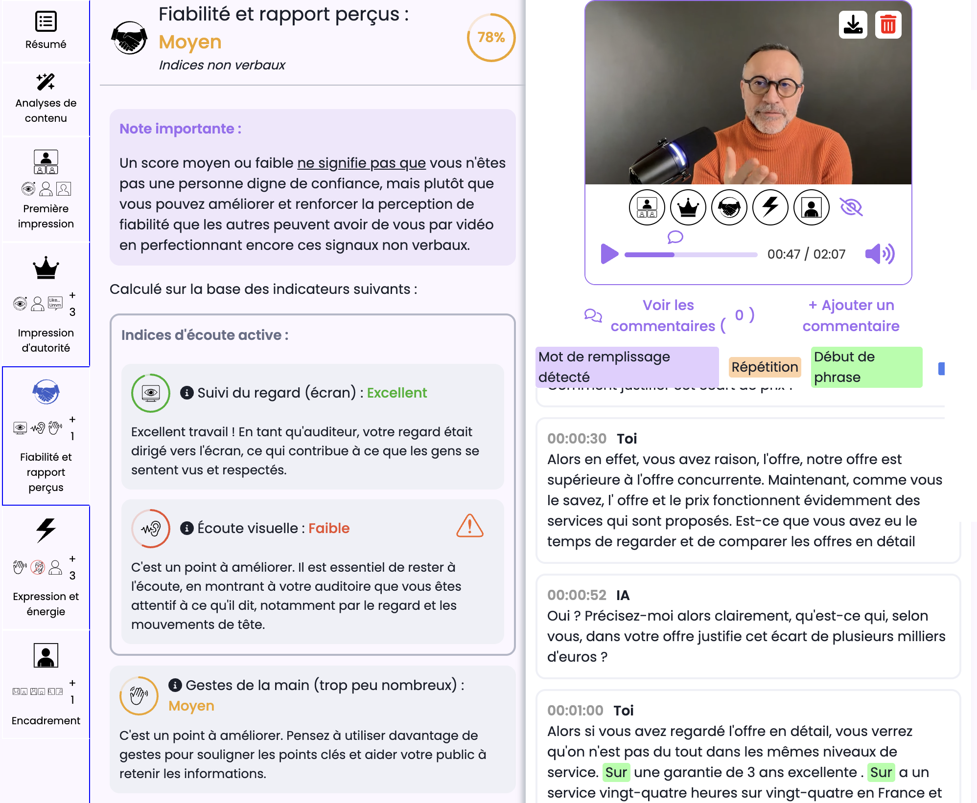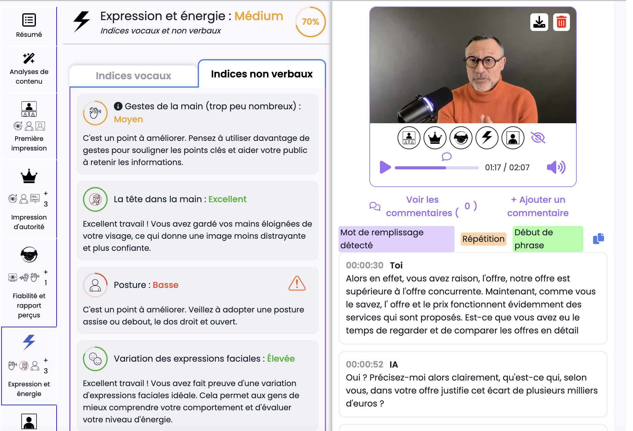 Feed-back et analyses mémorisées pour voir la courbe de progression de chacun
